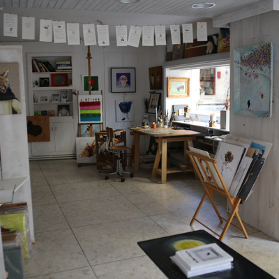 Mes tableaux sont des boîtes à tiroirs avec des petites pistes pour s’extraire du quotidien et chacun peut y trouver sa propre réponse” dit l’artiste. Il y a quinze ans, B. Aimetti fait une rencontre fondamentale, celle de Serge Barbuscia, directeur de la Compagnie du Théâtre du Balcon, en Avignon. Il participe activement à la création scénographique et iconographique de ses spectacles. Très productif, Bruno peint les mots de Barbuscia, leur symbiose est jubilatoire. “Bruno Aimetti ne serait-il pas un auteur de théâtre qui s'ignore ? Dans chacun de ses tableaux il y a une histoire qui nous est racontée... et puis un ou plusieurs personnages, quelquefois même un peu de texte écrit à vau-l'eau... et toute cette poésie qui s'en dégage, cette fragilité qui nous regarde, ces sentiments qui nous appellent. On aime. On se sent chez nous chez lui.“ (Serge Barbuscia) Il a réalisé entre autres le visuel du spectacle “La conférence des oiseaux“ qui a été primé parmi les 10 plus belles affiches du Festival off Avignon 2013 et qui fait l'objet d'une exposition à la Maison Jean Vilar en Avignon et à la Bibliothèque Nationale de France à Paris. Amnesty International a édité 12 de ses œuvres en cartes de correspondance. Aimetti écrit aussi, son œuvre est reliée en un opuscule illustré : Dichroscopies sinusoïdales (Itinérrances informelles, Métaphorismes édulcorés, Ecrivailleries prosaïques, Détourneries résiduelles, Bouquineries sempiternelles). Oulipien de cœur, sa verve réaliste frisant le surréalisme voire le non-sens parfois, embarque. Extrait : “Lorsque je me retrouve face à mon profil, je vois les choses du bon côté”, nous invite subtilement à prendre de la distance vis-à-vis de nous-mêmes !