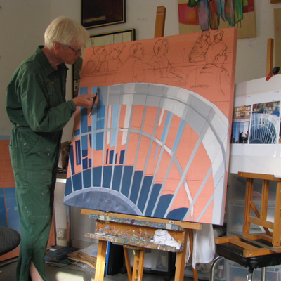 série d’huiles sur toile en s’inspirant de villes telles que Barcelone, Venise, Paris, Genève, Montreux, etc.
