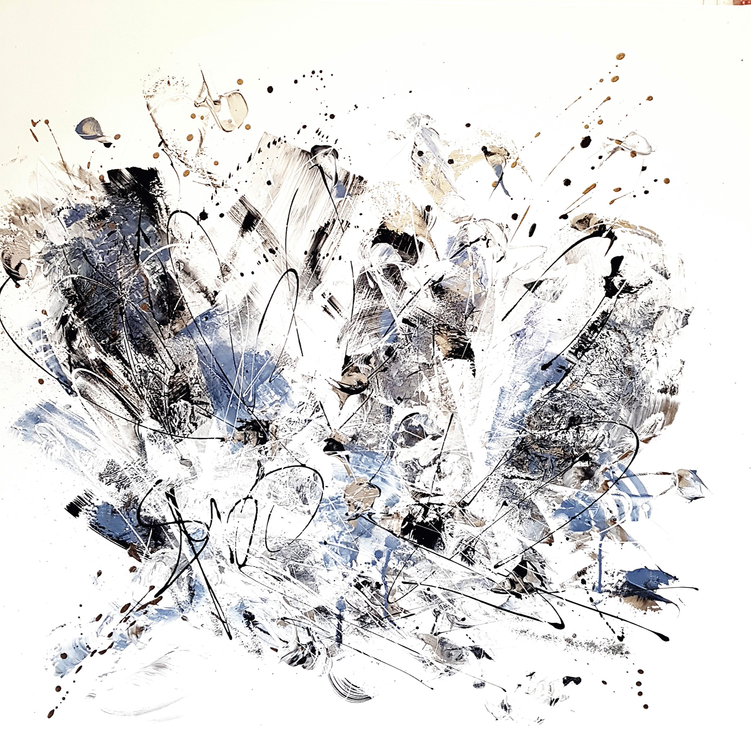Simone élabore ses œuvres un peu comme une composition musicale, comme une mise en scène d’expressions lyriques et joueuses. De sa spontanéité et de la liberté du geste émergent transparence et profondeur.