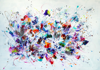 Simone élabore ses œuvres un peu comme une composition musicale, comme une mise en scène d’expressions lyriques et joueuses. De sa spontanéité et de la liberté du geste émergent transparence et profondeur.