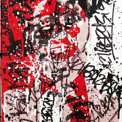 L'oeuvre en bas relief en quatre partie égale représentant quatre années de chaos , Donald Trump vs Street Art.