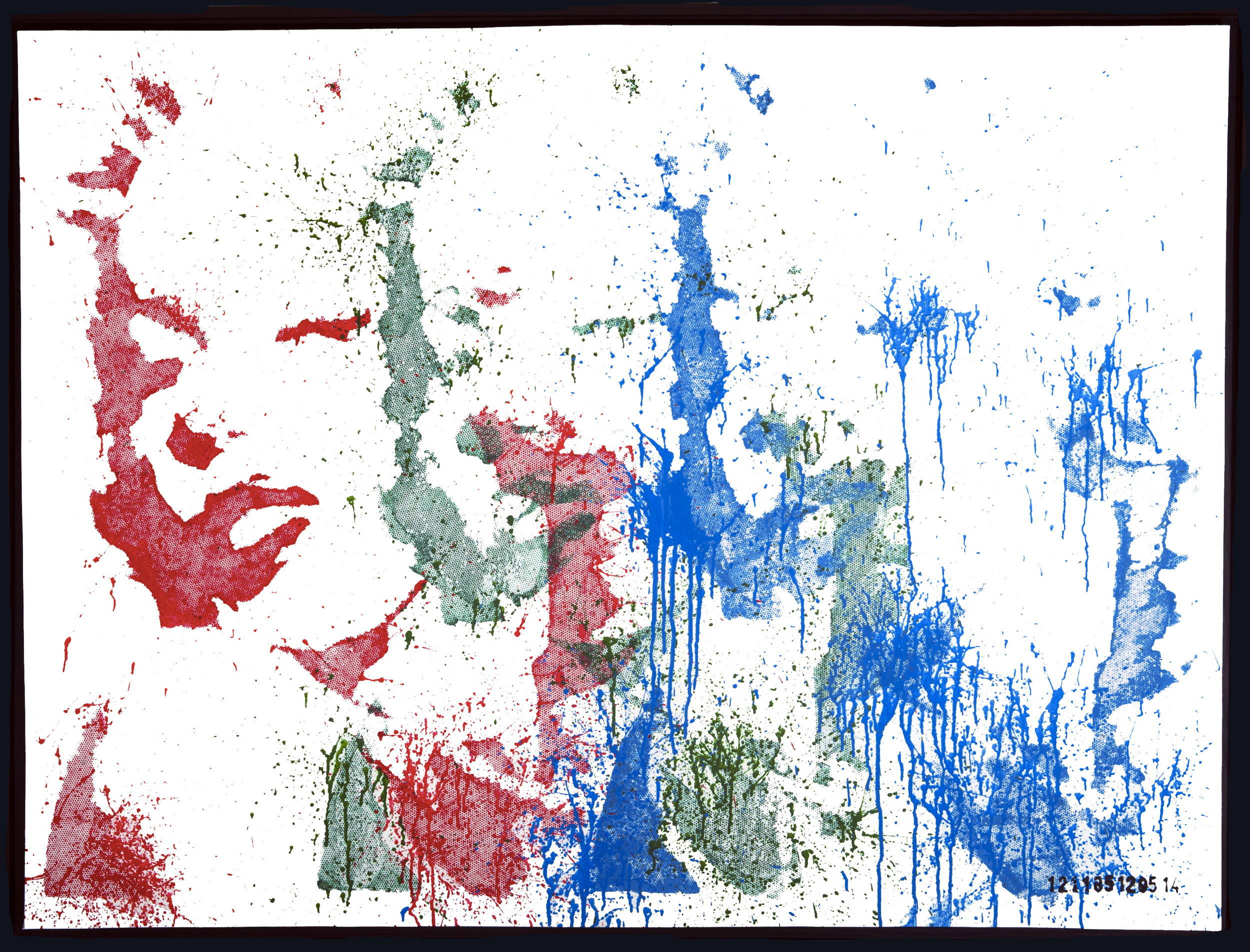 L'artiste 121185129514, à travaillé cette création " Marilyn Monroe " par un maillage de points permettant de reproduire les similis en rouge, vert et bleu conceptualisant un système de codage informatique des couleurs.