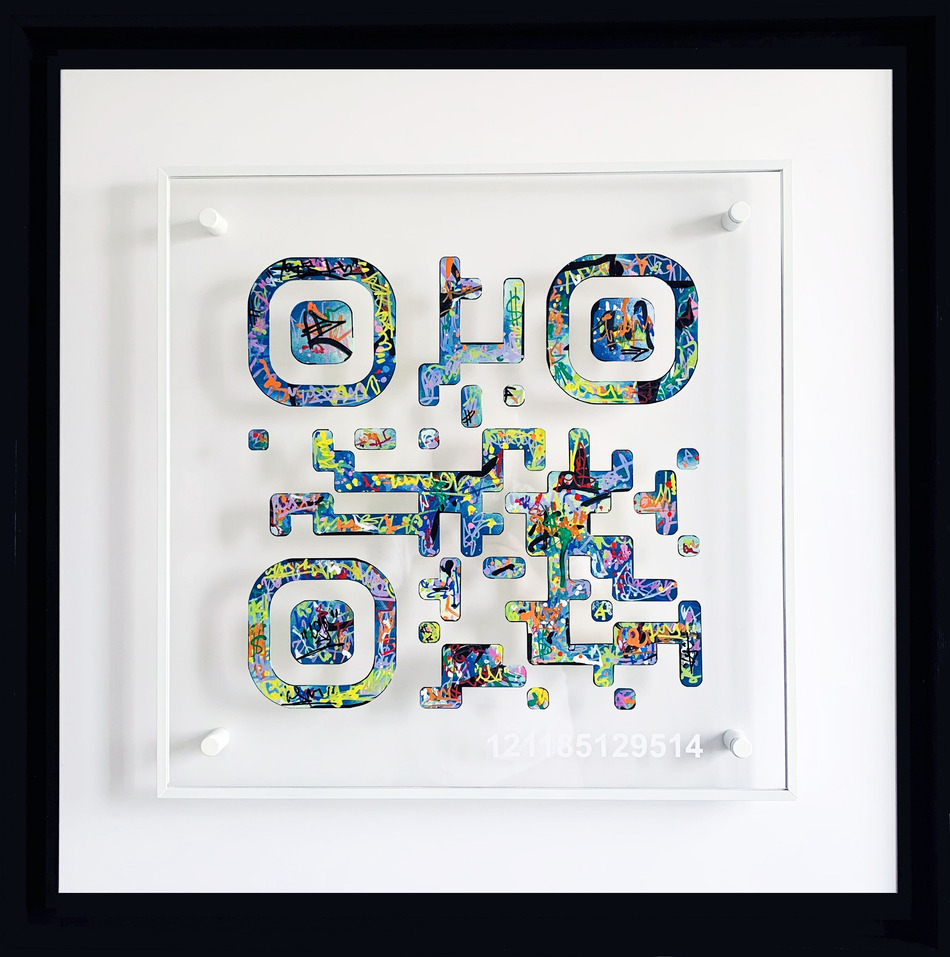 Type de code-barres en deux dimensions, une fois muni de votre appareil pour scanner le QR CODE, un message s'affichera sur votre écran, l'Artiste à voulu exécuter des inscription sur une surface, pour mettre en oeuvre les graffitis nouvelles générations.