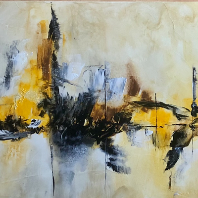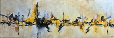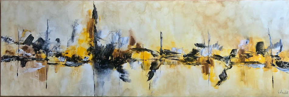 Toile sur châssis de la série Marine, bateaux. Paysage imaginaire représentant une ligne qui vous laisse partir vers un univers que vous seul créez. Il ne montre pas un lieu spécifique, il est basés sur la dynamique des couleurs et ces lignes horizontales et verticales et de la matière. La signature est au dos et sur la face. l'oeuvre est fournie avec un vernis protecteur.