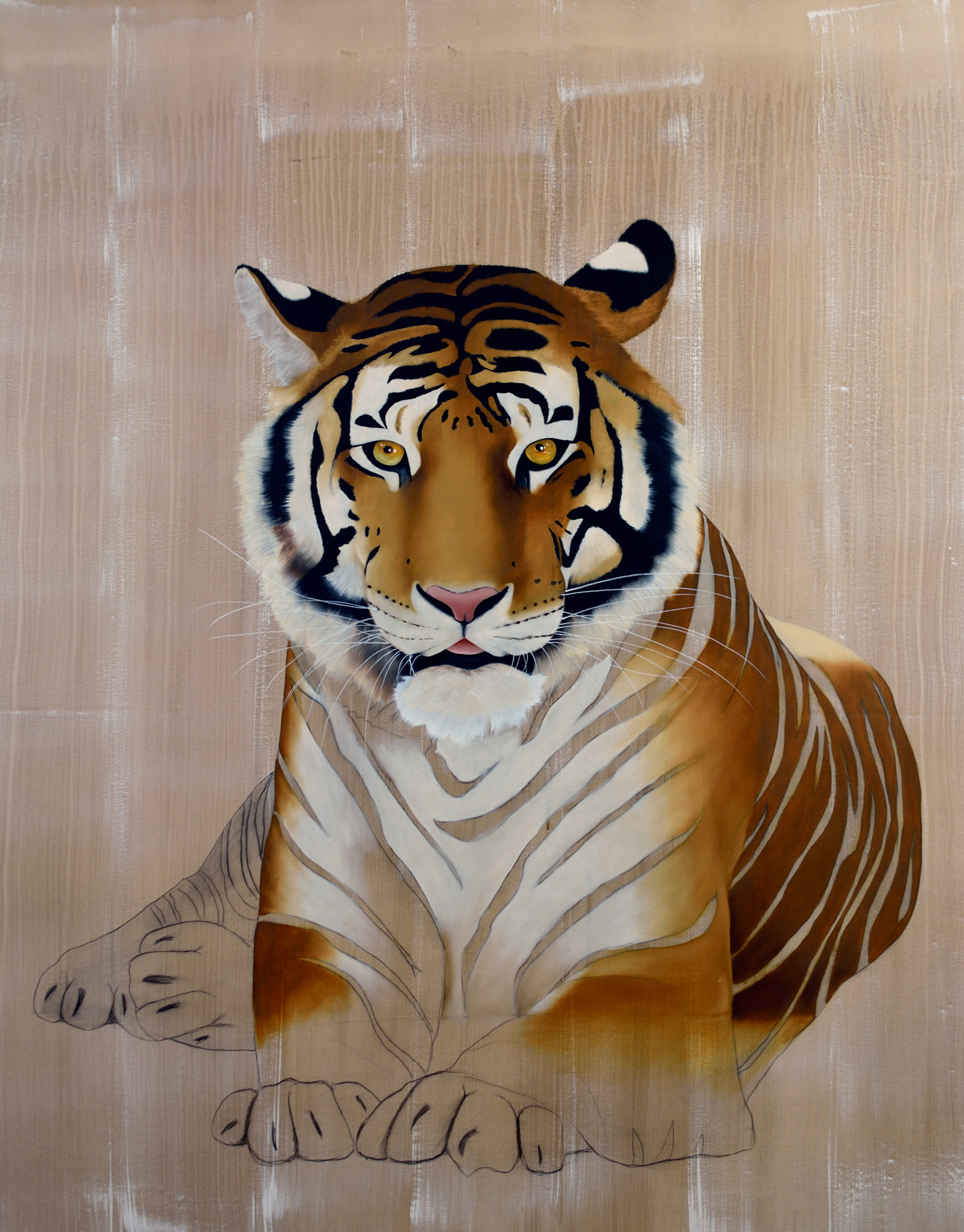 Ses grandes toiles d’animaux vont beaucoup plus loin que la simple représentation esthétique et réaliste, la « présence » des sujets est tellement forte qu’on ne peut plus les lâcher du regard, on sent littéralement l’âme de cette nature sauvage nous pénétrer au plus profond de notre être