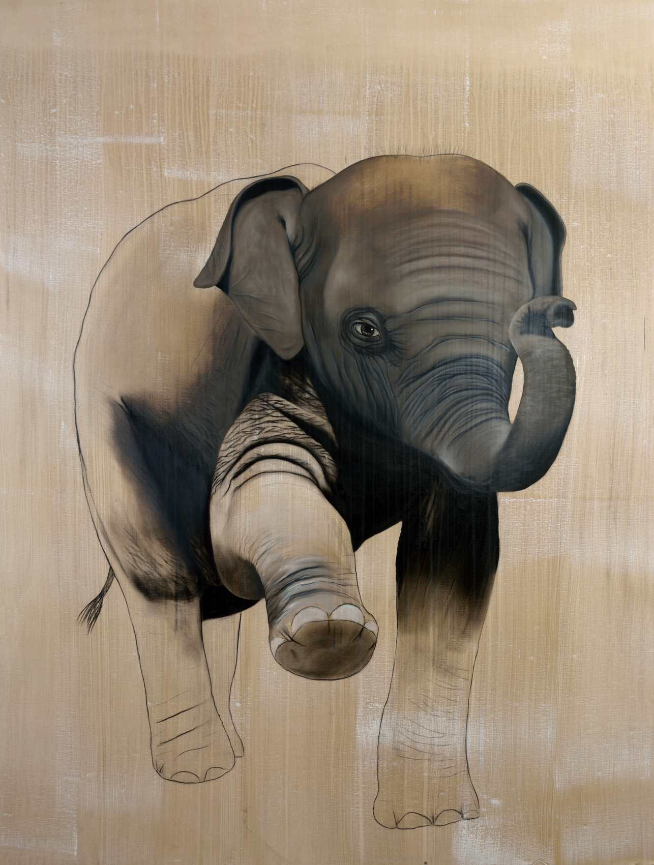 Ses grandes toiles d’animaux vont beaucoup plus loin que la simple représentation esthétique et réaliste, la « présence » des sujets est tellement forte qu’on ne peut plus les lâcher du regard, on sent littéralement l’âme de cette nature sauvage nous pénétrer au plus profond de notre être