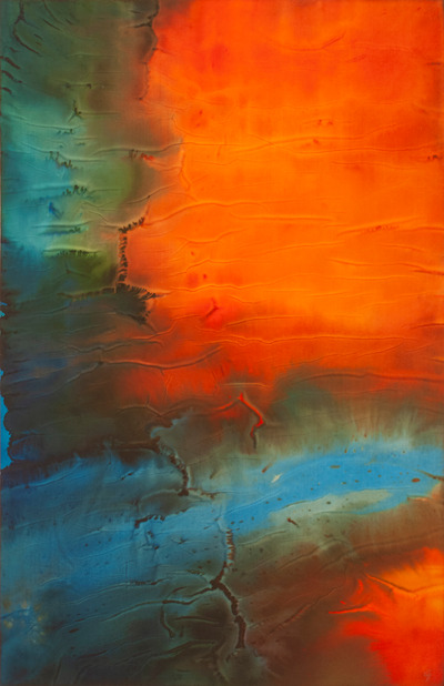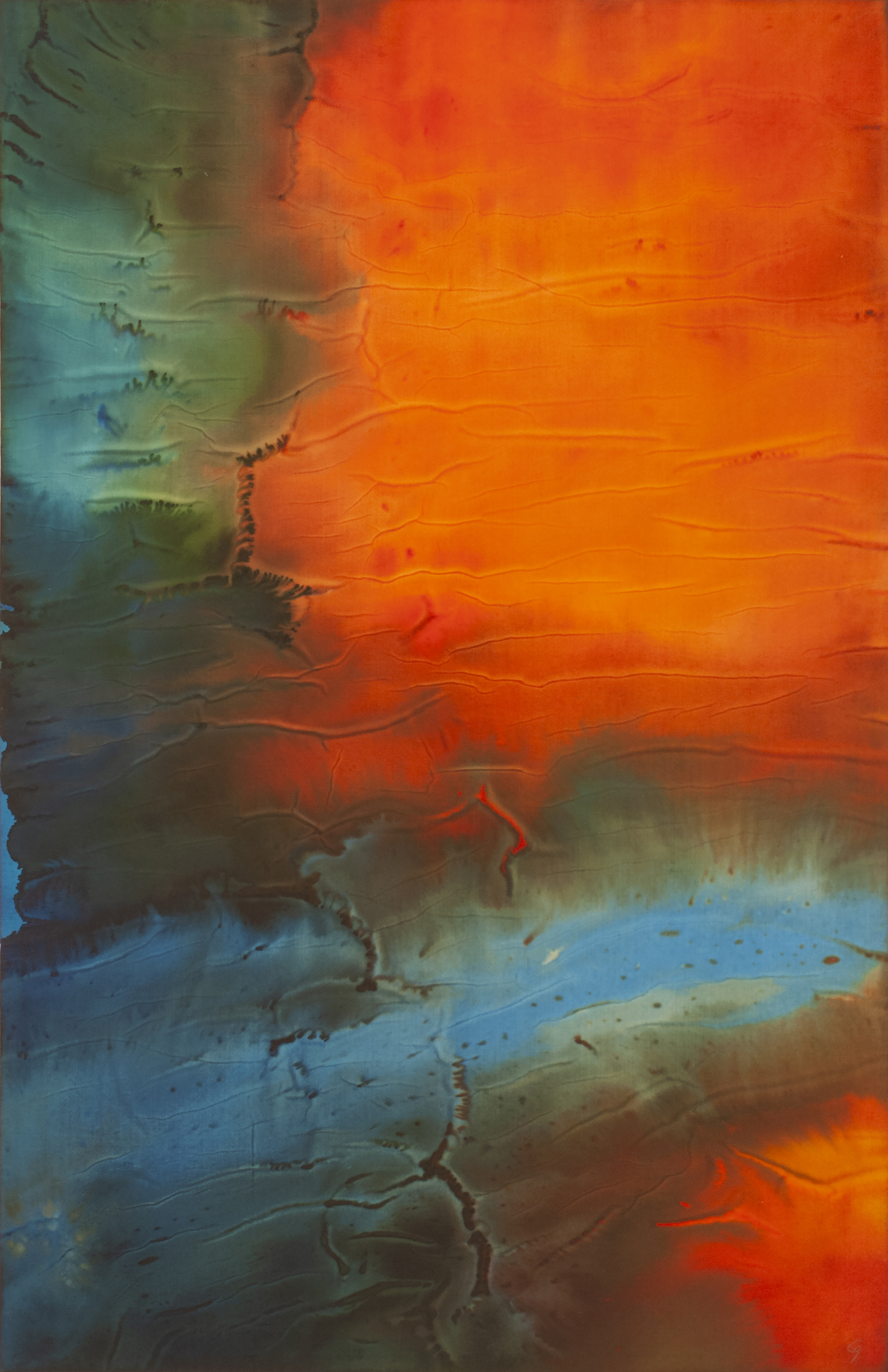 Pour ces créations, l’Artiste utilise de l’encre sur un papier de calligraphie filigrané. L’encre est répandue en grande quantité ainsi, elle change la nature du papier et lui donne un velouté visuel particulier. L’intention ici est de jouer la musique de l’âme tout comme un musicien improvise un morceau sur son instrument de prédilection. Catherine s’inspire de la nature, de paysages, de sensation pour réaliser ces improvisations sur le papier. La technique joue sur le degré d’hygrométrie des zones du papier, la pose de la 1ère eau est cruciale pour le rendu final. Vous êtes invités à voyager à partir de différents états dans la nature… Cette encre est réalisée je crois au retour d’un voyage dans les Seychelles. Après plusieurs jours passés dans l’élément liquide entre ciel et terre. Puis l’observation de la terre par le hublot dans l'avion du retour… avec un grand interêt pour les vues aériennes qui permettent de découvrir notre terre autrement. A chaque instant c’est une oeuvre d’art, c’est ce que je tâche de donner à voir dans mes créations souvent. Le sublime est là en constance sous nos yeux, crucial pour notre propre harmonie. Aerial est aussi une invitation à prendre de la hauteur et à nous rappeler que nous sommes nous aussi cette nature généreuse, puissante et souveraine.