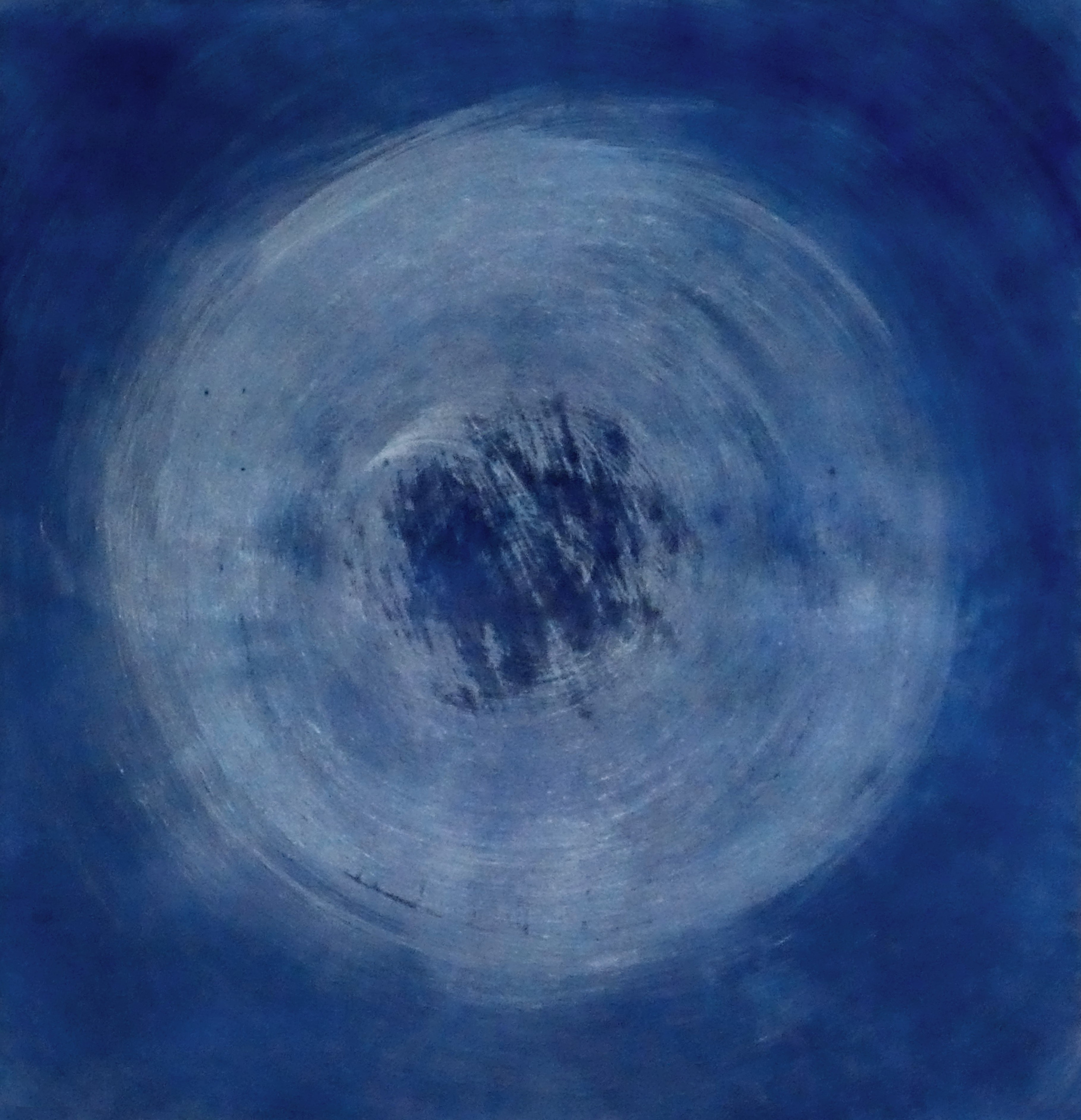 "L’empreinte bleue d’un arbre apparaît au centre du disque clair"