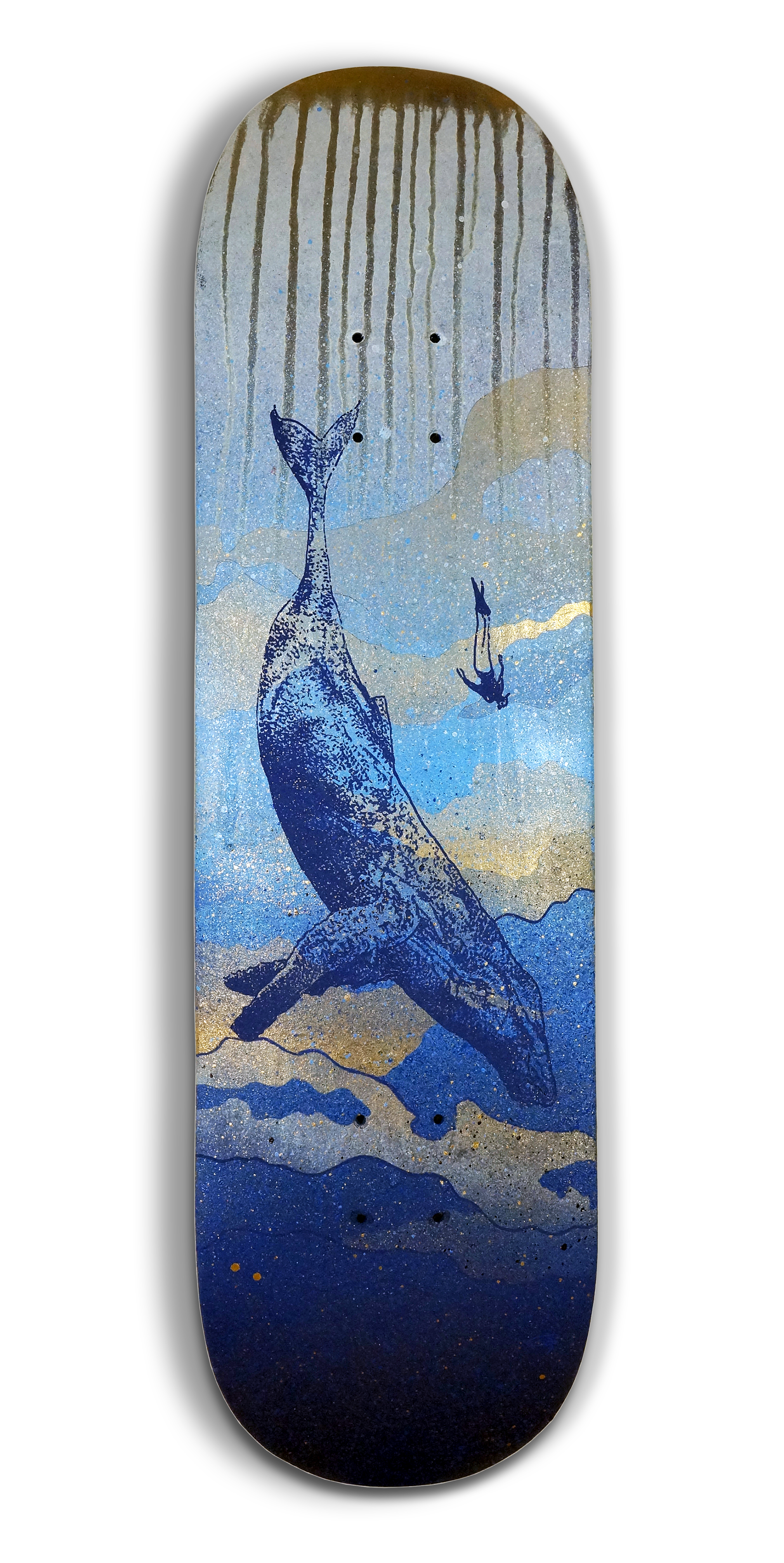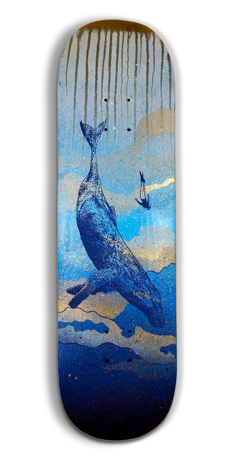 Après l’évocation d’un voyage aérien avec ENVOL, voici ABYSS pour un voyage sous-marin. Cette oeuvre est une invitation à la plongée abyssale, devenez ce plongeur qui accompagne cette majesté aquatique. Plongez dans vos propres abysses et trouvez votre majesté intérieure. Tout au fond, dans ce bleu infini de vous-m’aime vous trouverez de l’or, le votre!