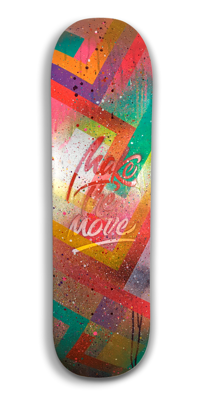 Dans la même veine que MOTIVACTION, l’artiste tire le fil de ce qui pourrait être une série à venir avec des citations engageantes. C’est l’occasion d’explorer la calligraphie, le pochoir et d’autres techniques suivant l’inspiration. Et par ce biais de faire en sorte que vous soyez inspirés à votre tour. Quels mots, quelle citation voudriez vous voir, lire à votre réveil ou lorsque vous levez les yeux de votre écran? MAKE THE MOVE vous donne l’impulsion alors faites le ce mouvement vers vous-même. Faites le maintenant!